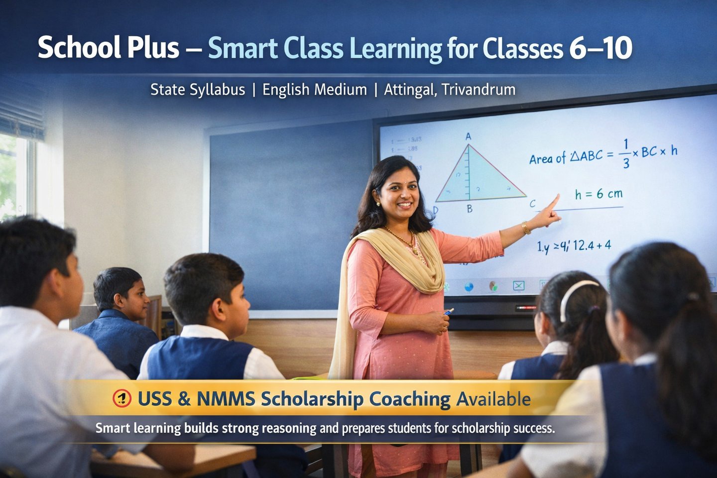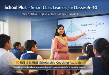 Welcome to School Plus – Attingal’s Modern Tuition Centre At School Plus, we believe that every student has the potential to succeed. We move beyond rote memorization by using Smart Class technology to break down complex concepts into clear, visual, and easy-to-understand lessons.
